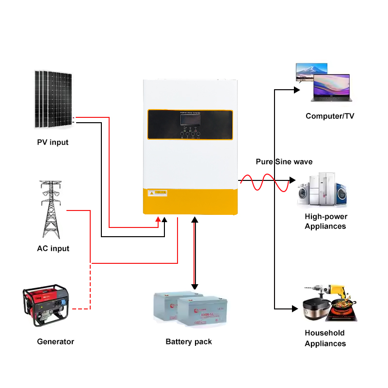 | نوع العاكس | العاكس الشمسي الهجين | نوع الإخراج | موجة جيبية واحدة نقية |
